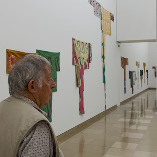 Vues du montage de l'exposition de Claude Viallat en compagnie des assistants du Musée Carré d'Art et de son atelier les jours précédents à celui-ci 13-10/2023. Ici, Lucien, Mathieu, Matt.